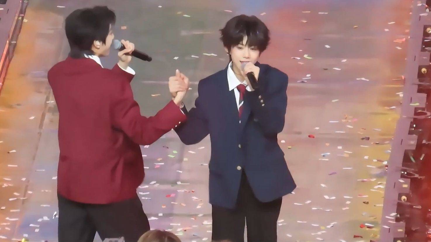 最微妙的平衡发生在跨代合作环节。当三代成员给四代练习生整理衣领时,台下同时响起「爷青回」和「别碰我崽」的呼喊。这种撕裂感在数据端体现得更明显:TFBOYS经典歌曲的合唱片段播放量破亿,但弹幕里「不如前辈」的评论和「新生代冲啊」的应援各占一半。公司显然深谙此道,特意安排四代练习生翻唱《青春修炼手册》时,镜头扫过举着橙色应援旗的「四叶草」——那些十年前的少女现在带着孩子来追星,手里还握着给新偶像的灯牌。