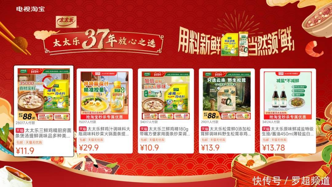 调味品品牌太太乐,今年春节期间,在小米+海信电视上打造了“创意开机”,还做了小年夜频道的冠名赞助,锁定买年货这个关键节点,让消费者通过电视淘宝直接下单购买。整个春节投放周期,通过大屏达成的下单数达到10778单,成交额超过90万。