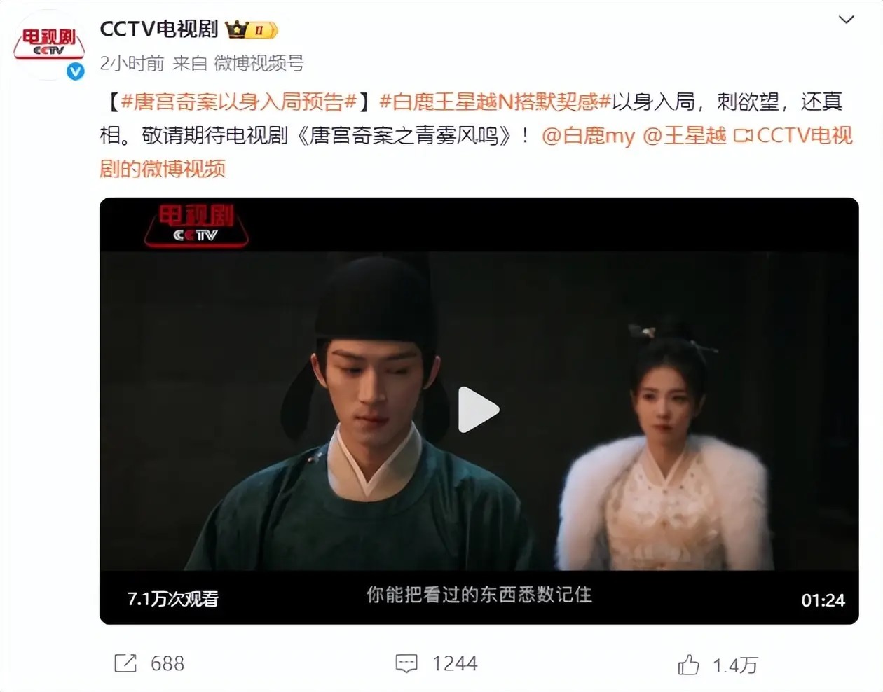 一部还没开播的《唐宫奇案》,先导片单日播放破百万,连央视都亲自下场宣传转发,凭啥能提前锁定爆款?